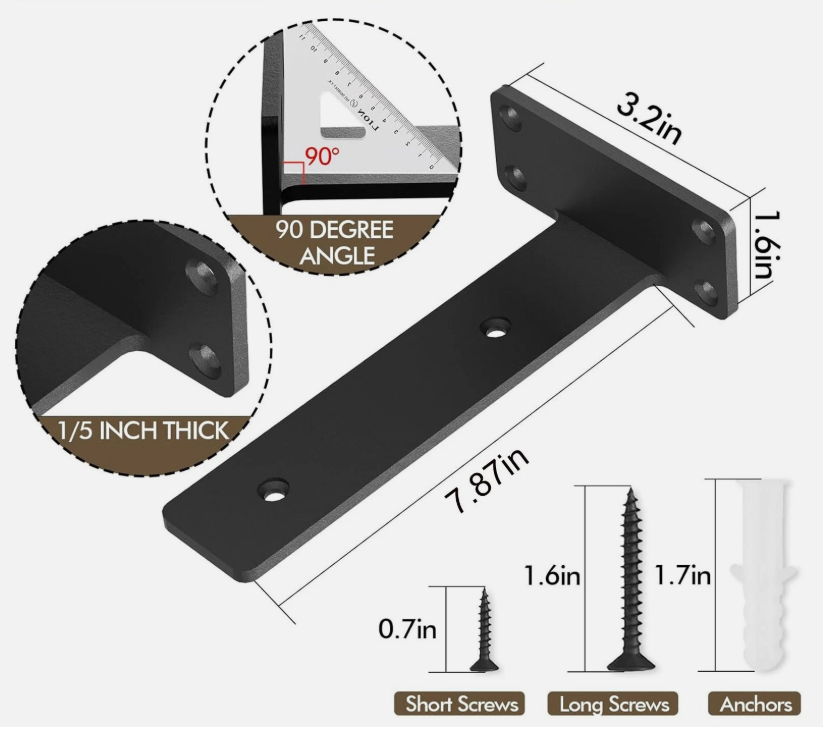 - Supplied with Heavy Duty Industrial Style black metal floating shelf brackets for a clean, seamless wall-mount