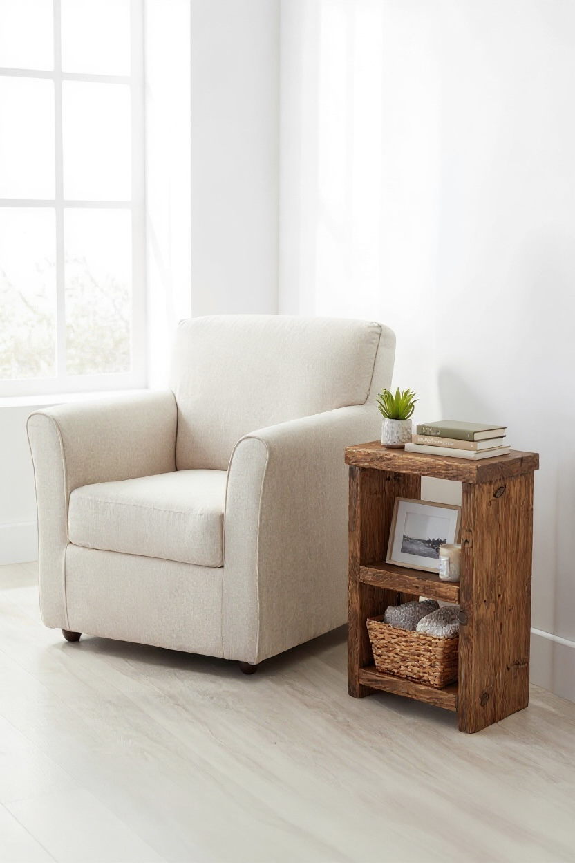 Add warmth and character to any room with our handcrafted reclaimed wood side table – simple, useful, and full of charm. Whether you use it as a bedside table, a bathroom shelf, or a place for your favourite plant, it adds natural texture and timeless appeal to your space.