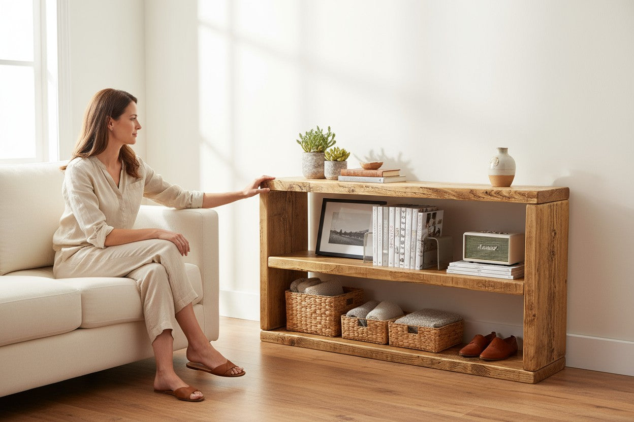 Keep your home organised with our handcrafted reclaimed wood shoe rack – where practical storage meets rustic charm. Each piece showcases authentic wood grain and character marks that only genuine reclaimed timber can provide.