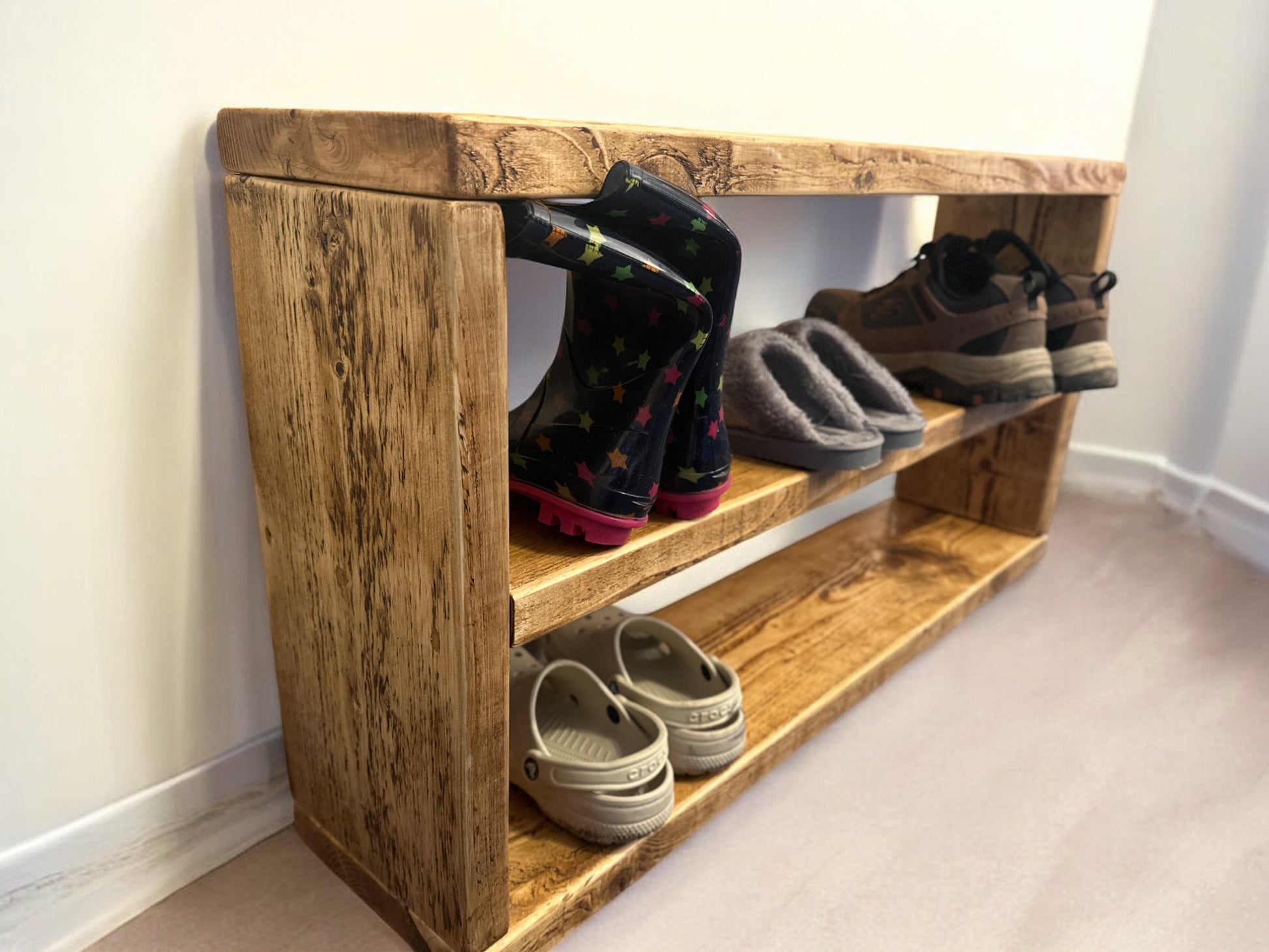 Rustic Reclaimed Wood Shoe Rack | Handmade Storage Unit | UK Made